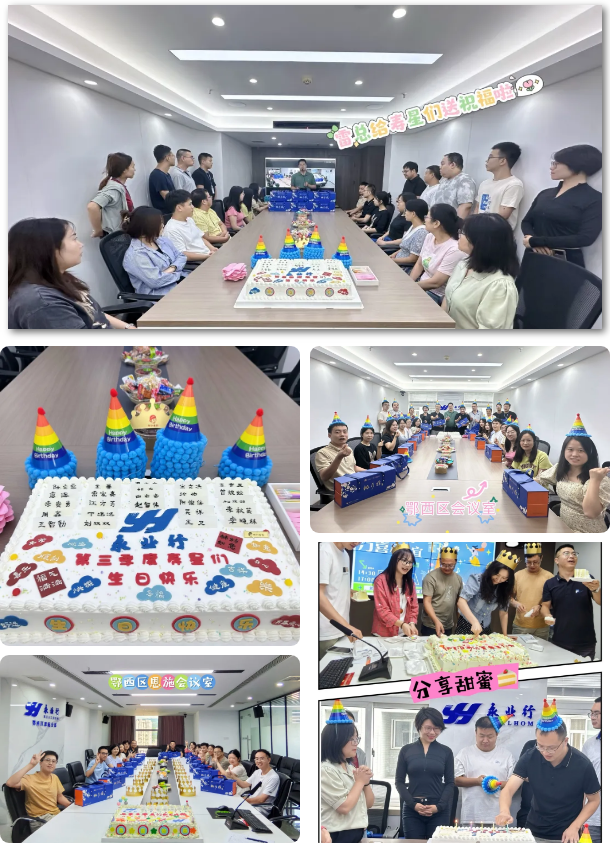 放有所有寿星姓名的生日蛋糕,公司领导、鄂西区总经理雷小明亲临现场献上生日祝福~满满的仪式感,让小伙伴们倍感温暖。
