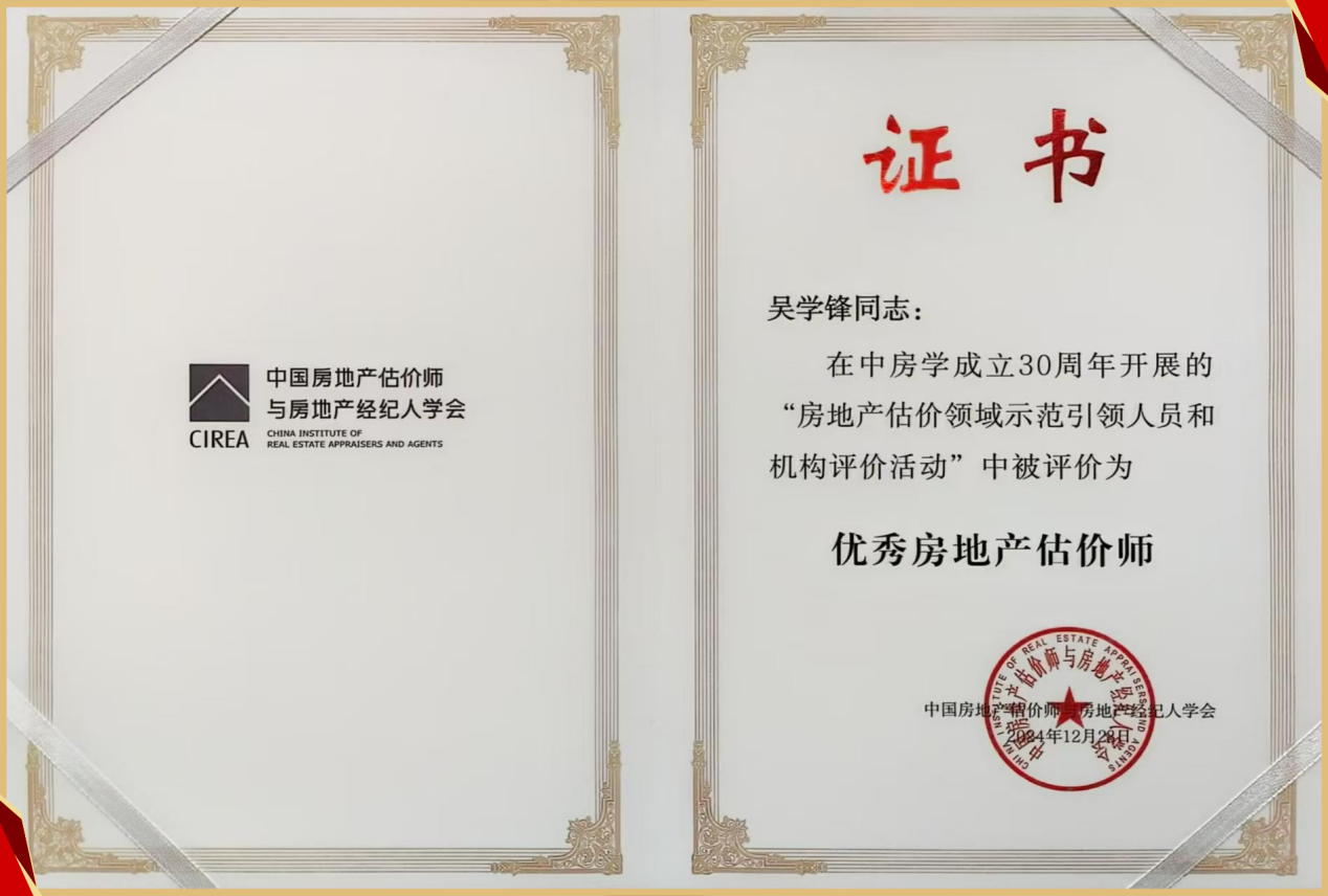 在“房地产估价领域示范引领人员和机构评价活动”中,永业行凭借稳健经营、专业服务、创新发展以及履行企业社会责任等多方面的杰出表现,赢得了行业认可,荣获 “优秀房地产估价机构” 称号,有力地彰显了公司在行业内的领先地位和品牌影响力。
